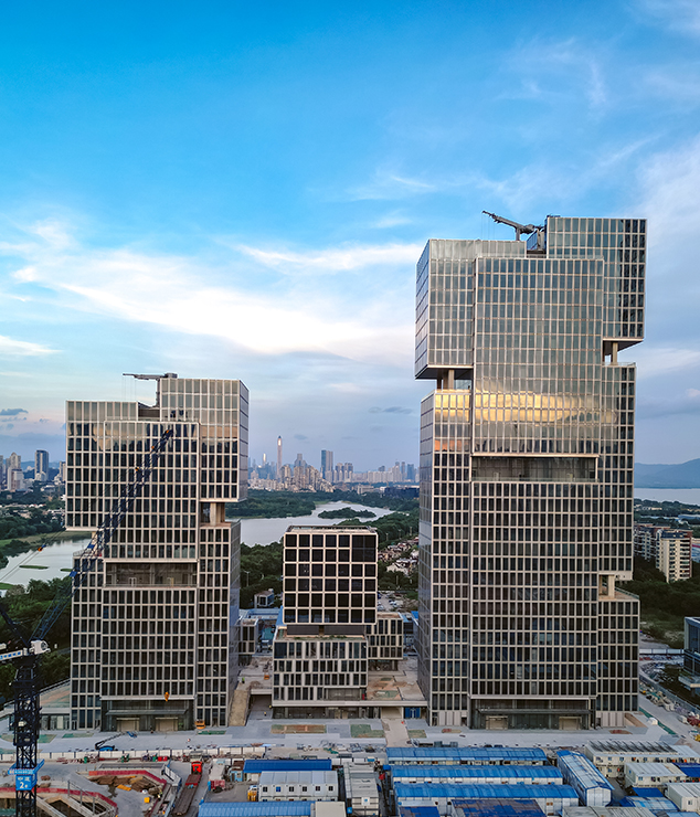建筑高度:A塔156m(32層),B塔107m(21層) 幕墻面積:7.2萬(wàn)m2 項(xiàng)目設(shè)計(jì):德國(guó)gmp建筑事務(wù)所 幕墻類型:4米*10米超大單元式玻璃幕墻、框架幕墻系統(tǒng)等