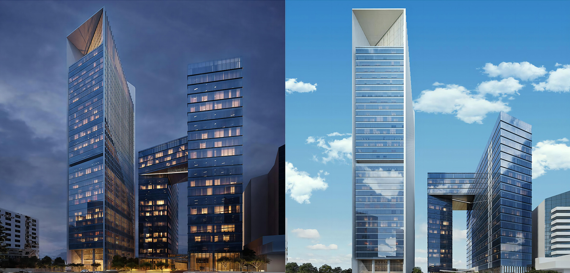 項(xiàng)目設(shè)計(jì):Ekarchitects建筑事務(wù)所 幕墻類型:單元式玻璃幕墻、鋁板幕墻等