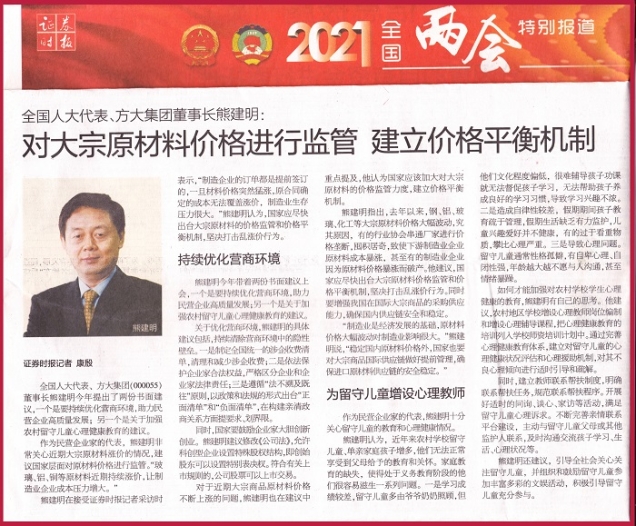 全國人大代表、方大集團(000055)董事長熊建明今年提出了兩份書面建議,一個是要持續優化營商環境,助力民營企業高質量發展;另一個是關于加強農村留守兒童心理健康教育的建議。